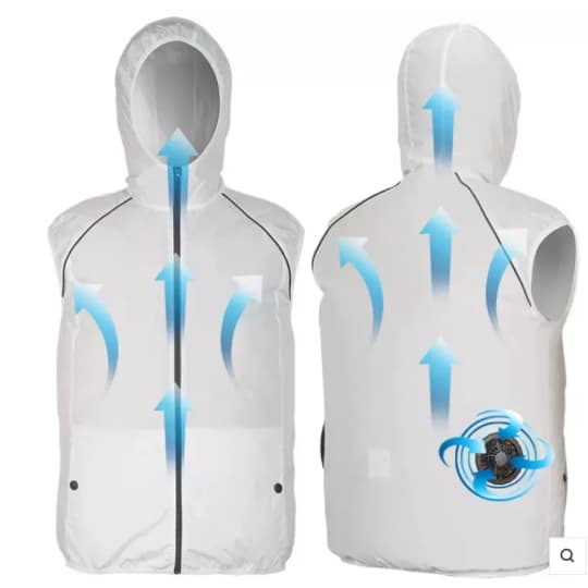 Unlike standard cooling vests, this model includes a detachable hood, providing additional sun and dust protection when needed. In addition, the vest’s adjustable waistband ensures a secure fit that prevents the fans from shifting during movement.